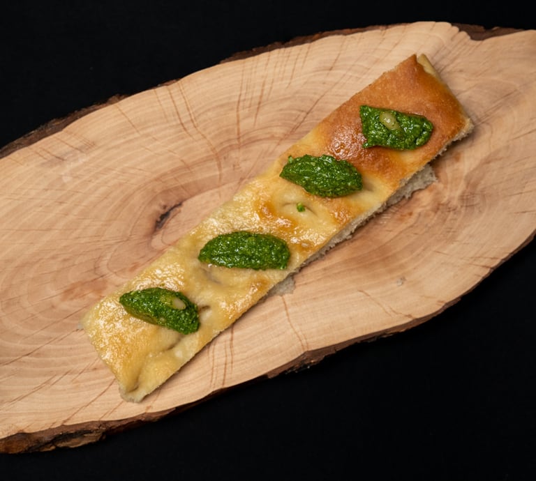 Preparata con lo stesso impasto della versione classica, viene arricchita con un pesto di alta qualità fatto da noi, lavorato a freddo per preservarne aroma e freschezza. La combinazione tra la fragranza della focaccia e il profumo del basilico genovese crea un prodotto dal gusto immediatamente riconoscibile, ideale per aperitivi, ristorazione, consumo domestico o vendita al dettaglio.